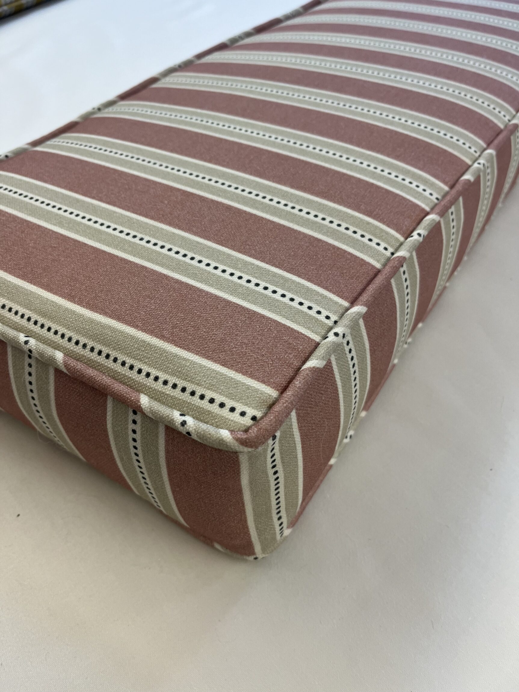 - Make a box cushion in a striped fabric with piping and a zip.